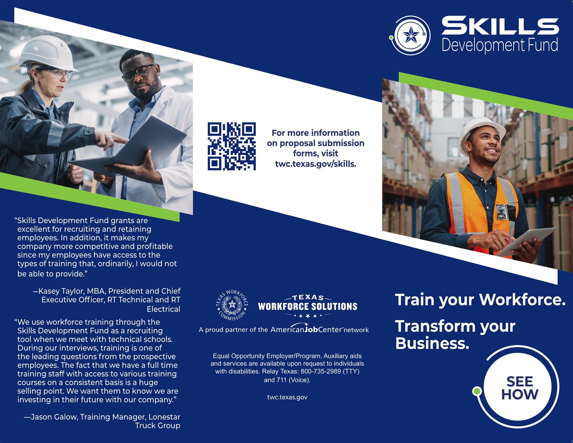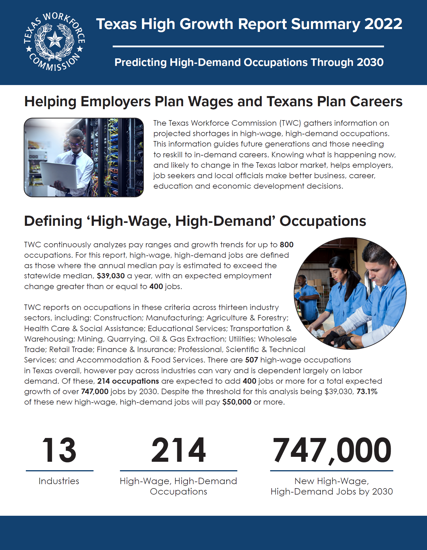 TWC and its Workforce Solutions partners will maximize the power of innovation and partnerships to boost superior business outcomes and realize a competitive advantage for all Texans in the global economy.